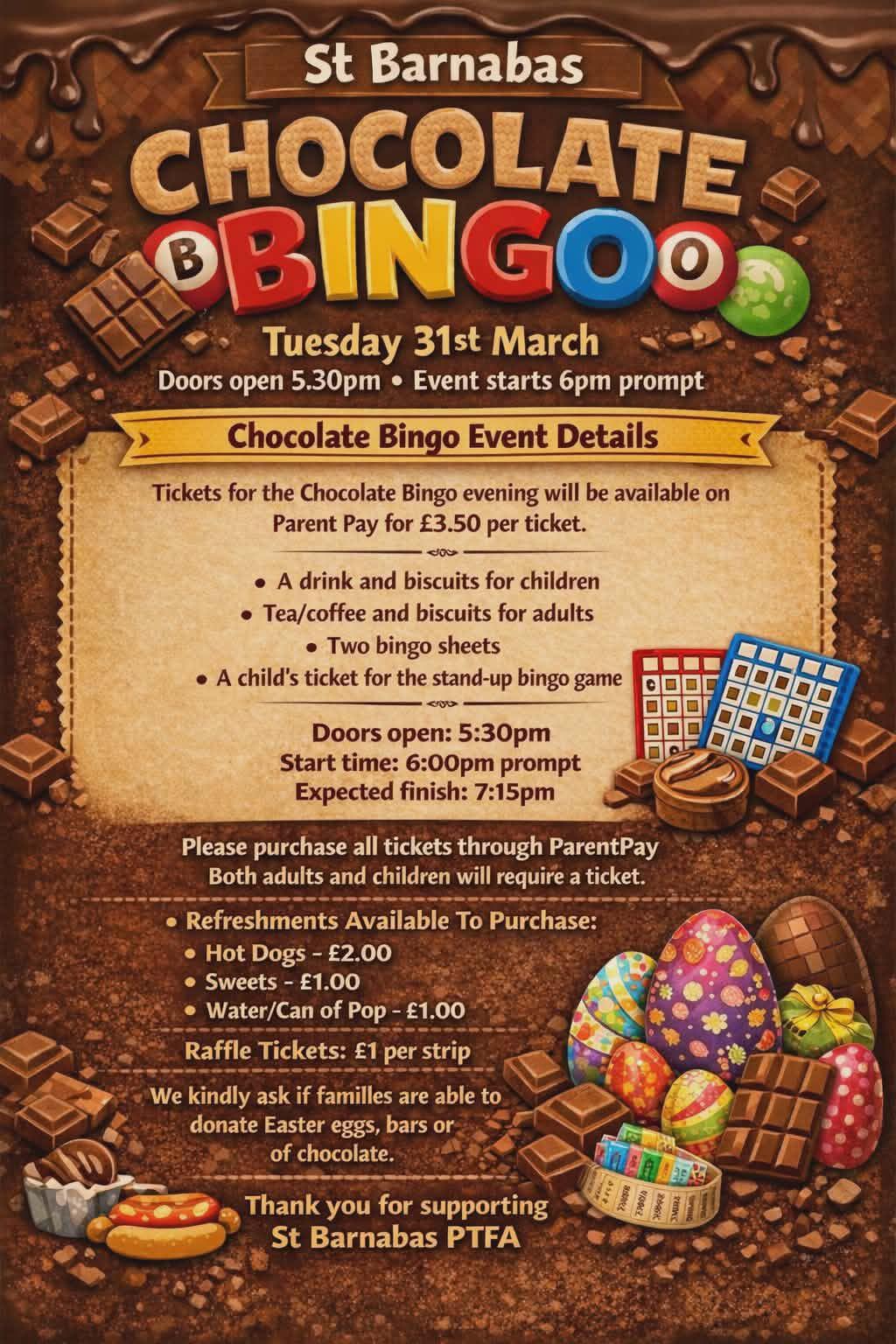 Thank you for supporting the St Barnabas PTFA—we can’t wait to see you there for a "choc-tastic" night!