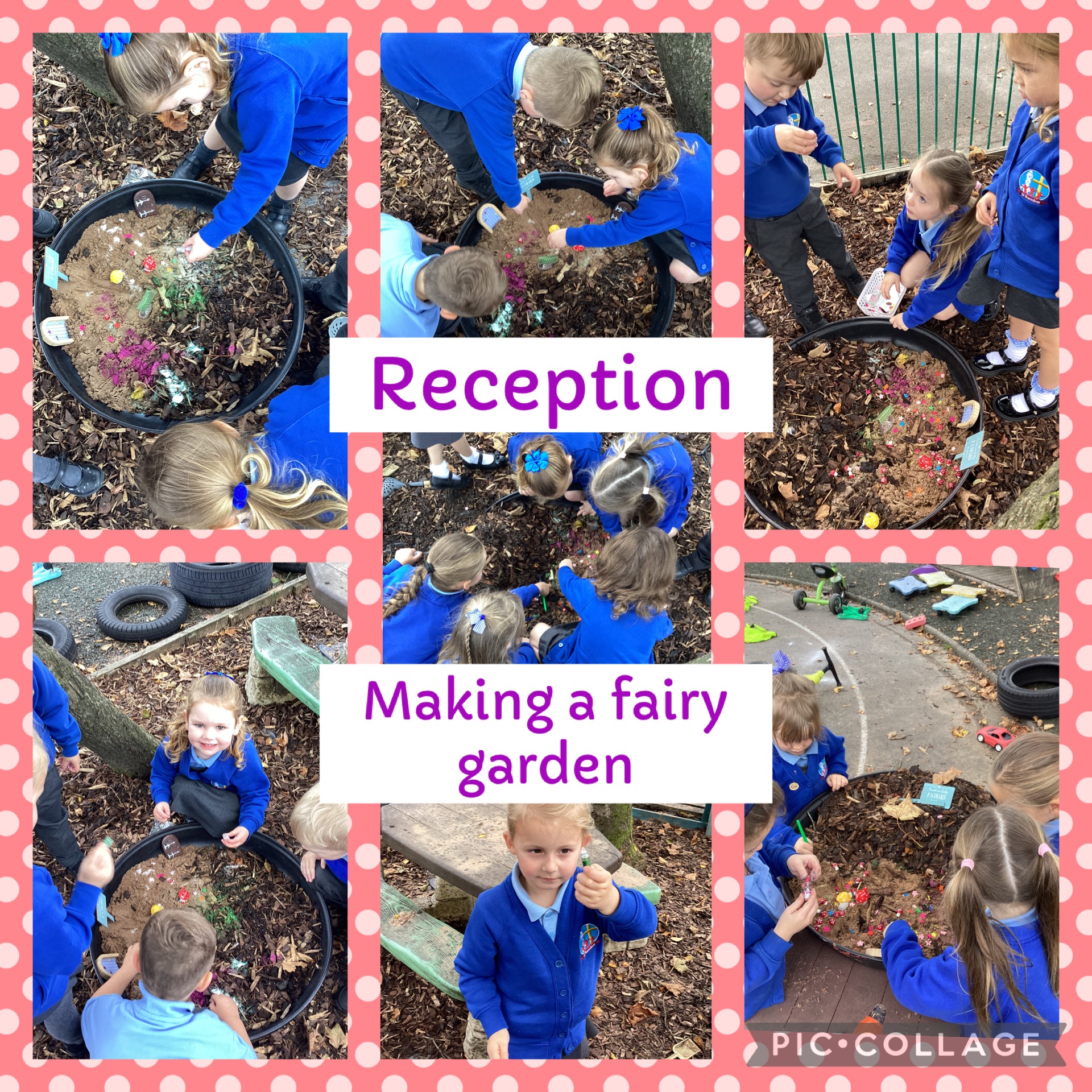 The children have had lots of fun creating a fairy garden this week. They worked together beautifully and really thought about what they might need to create a home the fairies might like. The children decided to collect sand and bark for the base of their fairy garden. They then added toad stools, fairy houses and secret doors, not forgetting to add a sprinkle of fairy dust.