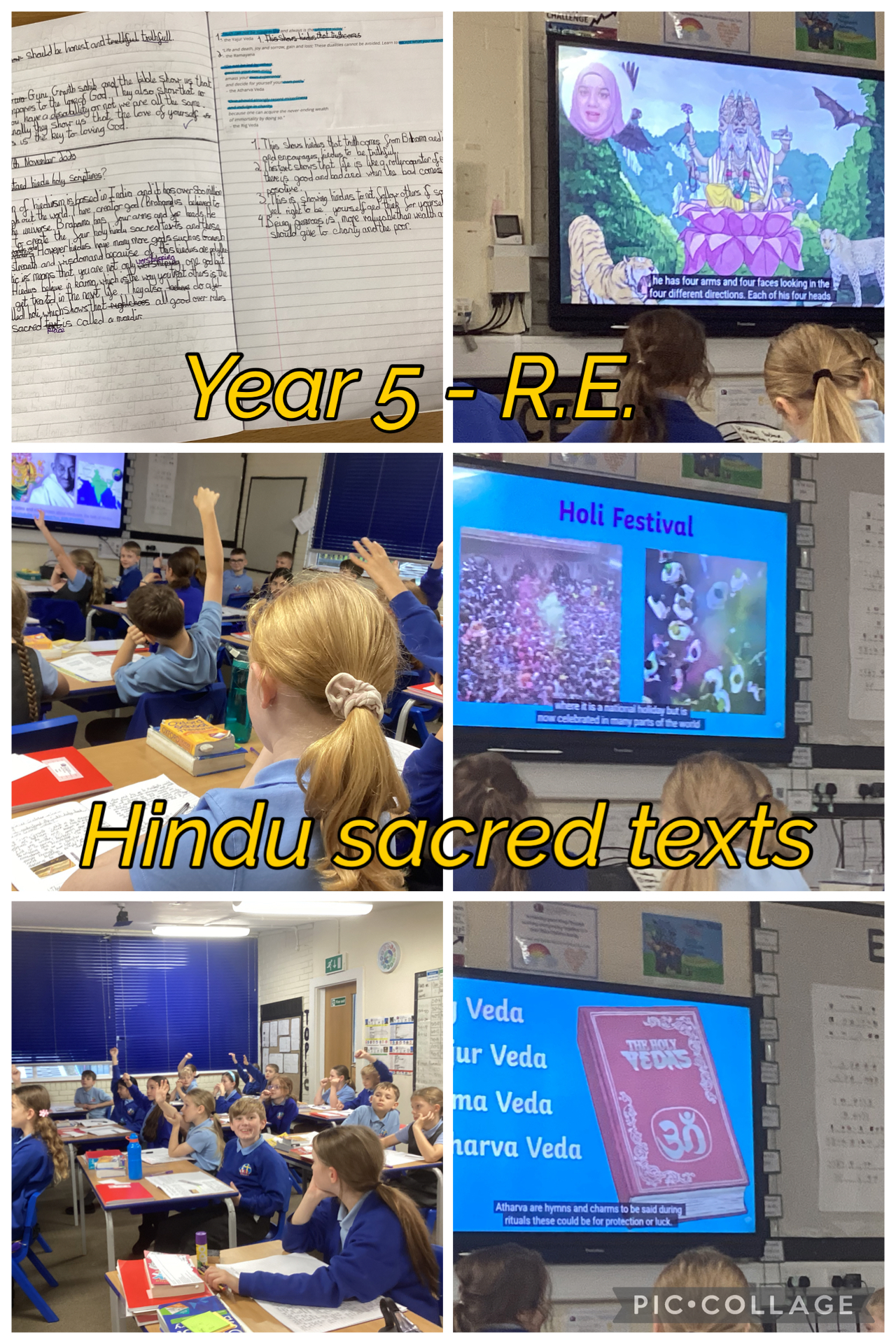 In R.E., Year 5 continued exploring the sacred texts of different religions. We explored Hinduism and the teachings of their sacred texts including the Veda and the Ramayana, which emphasise duty, generosity and honesty. In our final lesson in the topic next week, we will return to the Bible and the different methods it uses to teach Christians.