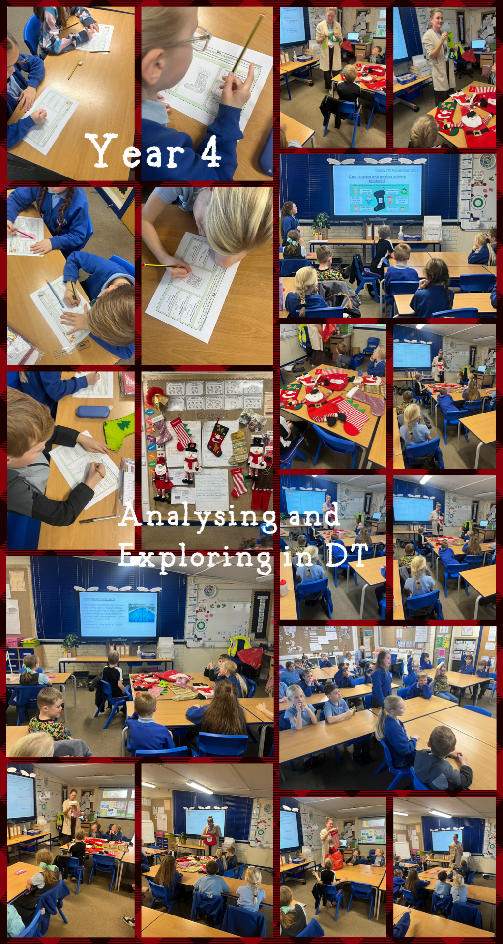 In DT we have started our new unit on Seasonal Stockings. We looked at what we already know about stockings, what their function is and where the tradition of leaving stockings out at Christmas came from.