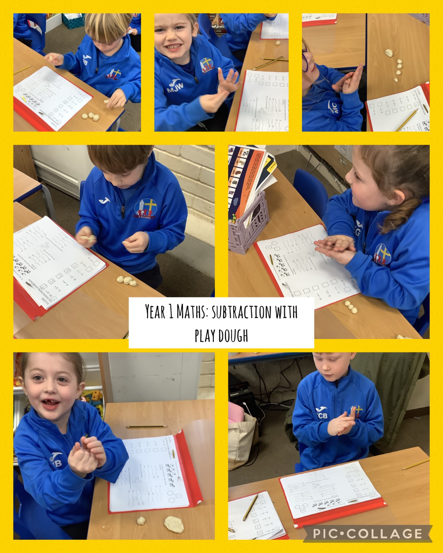 Year 1 had so much fun in maths today using play dough to help them with subtraction. For example, for 8-2=6, they had to roll 8 balls of play dough as this is the whole, then squash 2 (a part) to find out how many were left over (6 as a part). They found this helpful as they could physically change the play dough and use it as a visual. Well done Year 1!