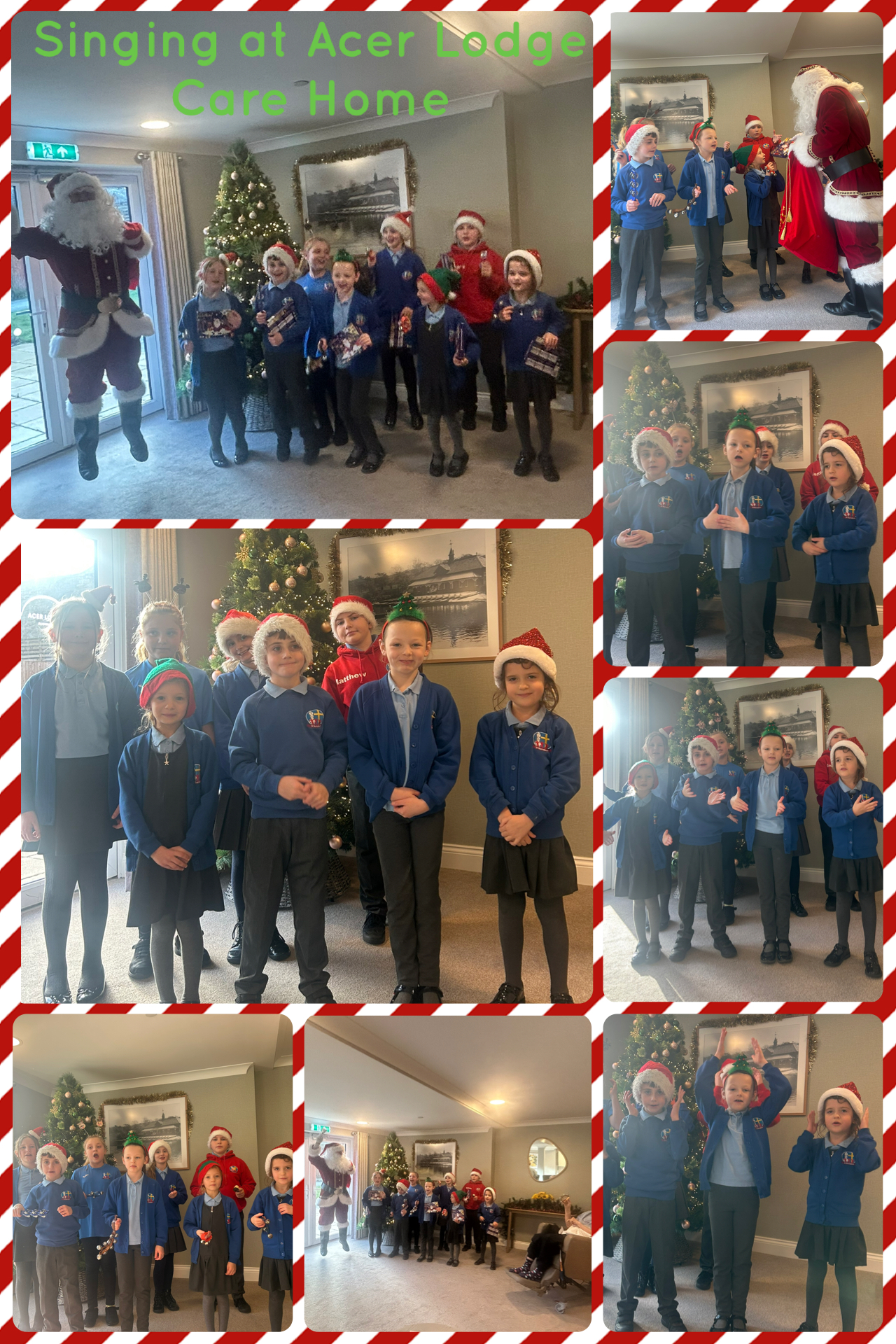 We are so proud of the 8 children, who were selected based on their effort in Monday's singing worship, who sang at Acer Lodge Care Home on Wednesday. They brought lots of festive cheer to the residents and it was wonderful to see them joining in with the bells we gave out. The children were over the moon to get a surprise visit from Santa himself, who thanked the children by giving them each a selection box.