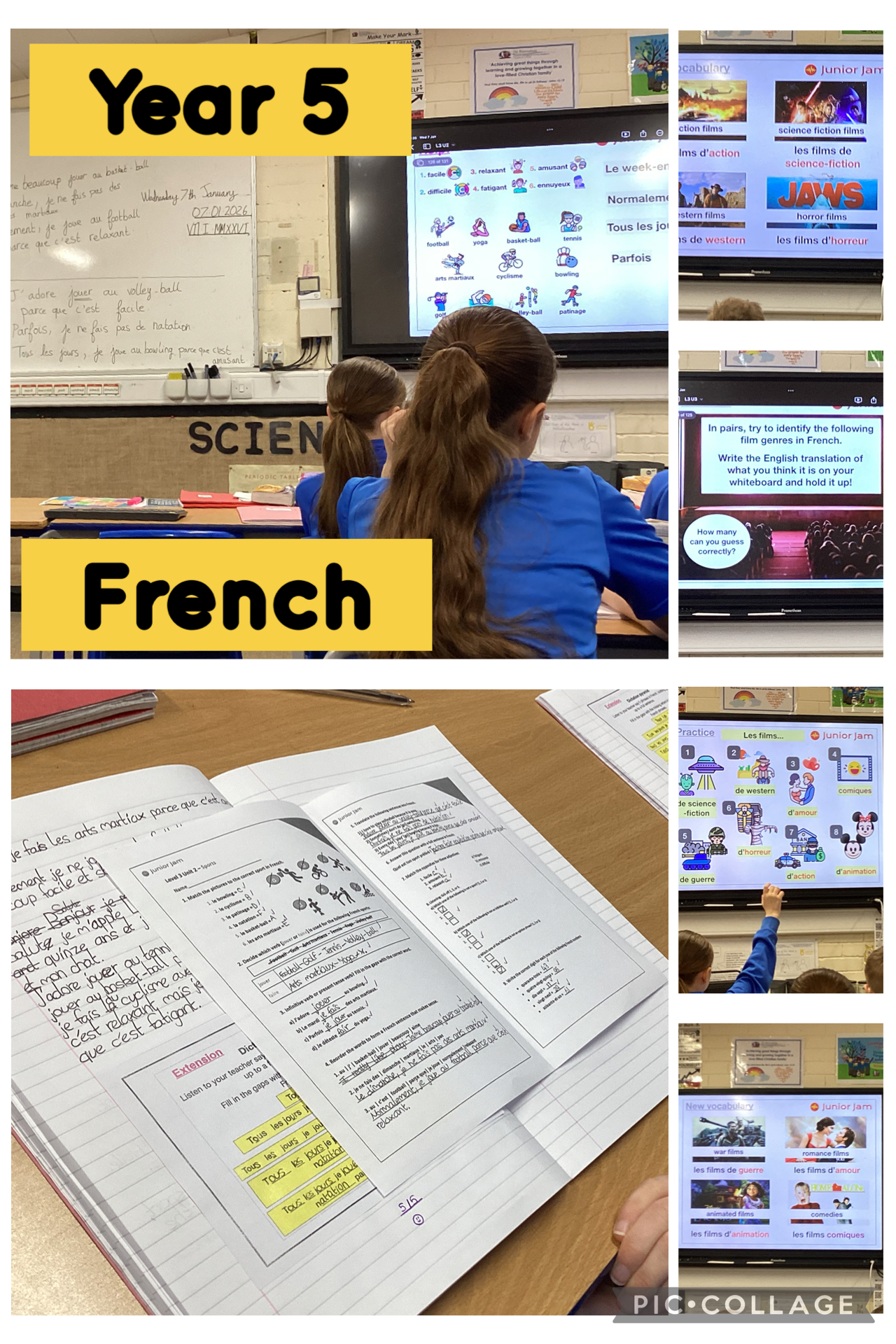 In our new French topic, Year 5 began to learn vocabulary for different film genres and how to give opinions on them. This recapped prior learning (e.g. j’adore, deteste) and children used this vocabulary to ask and answer questions about their favourite films. Mrs Hayat had great praise for the children’s work ethic and behaviour. Well done Year 5!