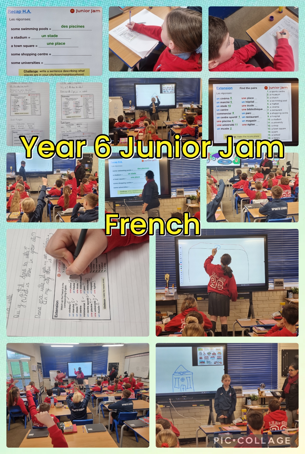 This week in French Year 6 have been looking at describing the places we might find in a town centre. They also played a game where one child drew a town centre building and the rest of the class had to name it in French. There was also a challenge to write full sentences describing places to visit in our own town centre.