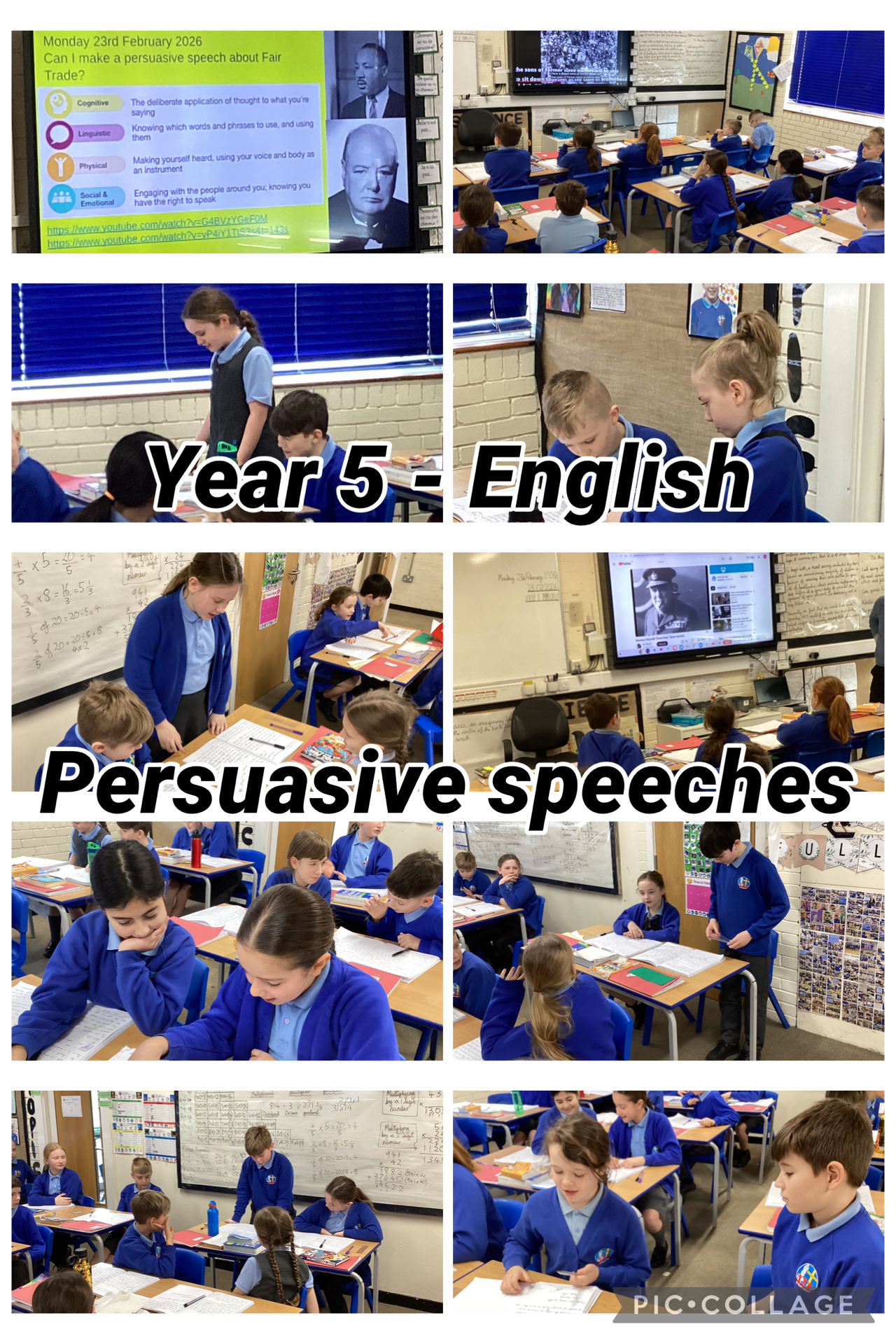 Having completed our persuasive letters promoting Fair Trade products, the children had the opportunity to read their letters out loud. The aim was to be as persuasive as possible, using techniques learned from famous speeches of Winston Churchill and Martin Luther King. The children considered how language choice, repetition, pauses, volume and body language can engage an audience and convince people of your argument.