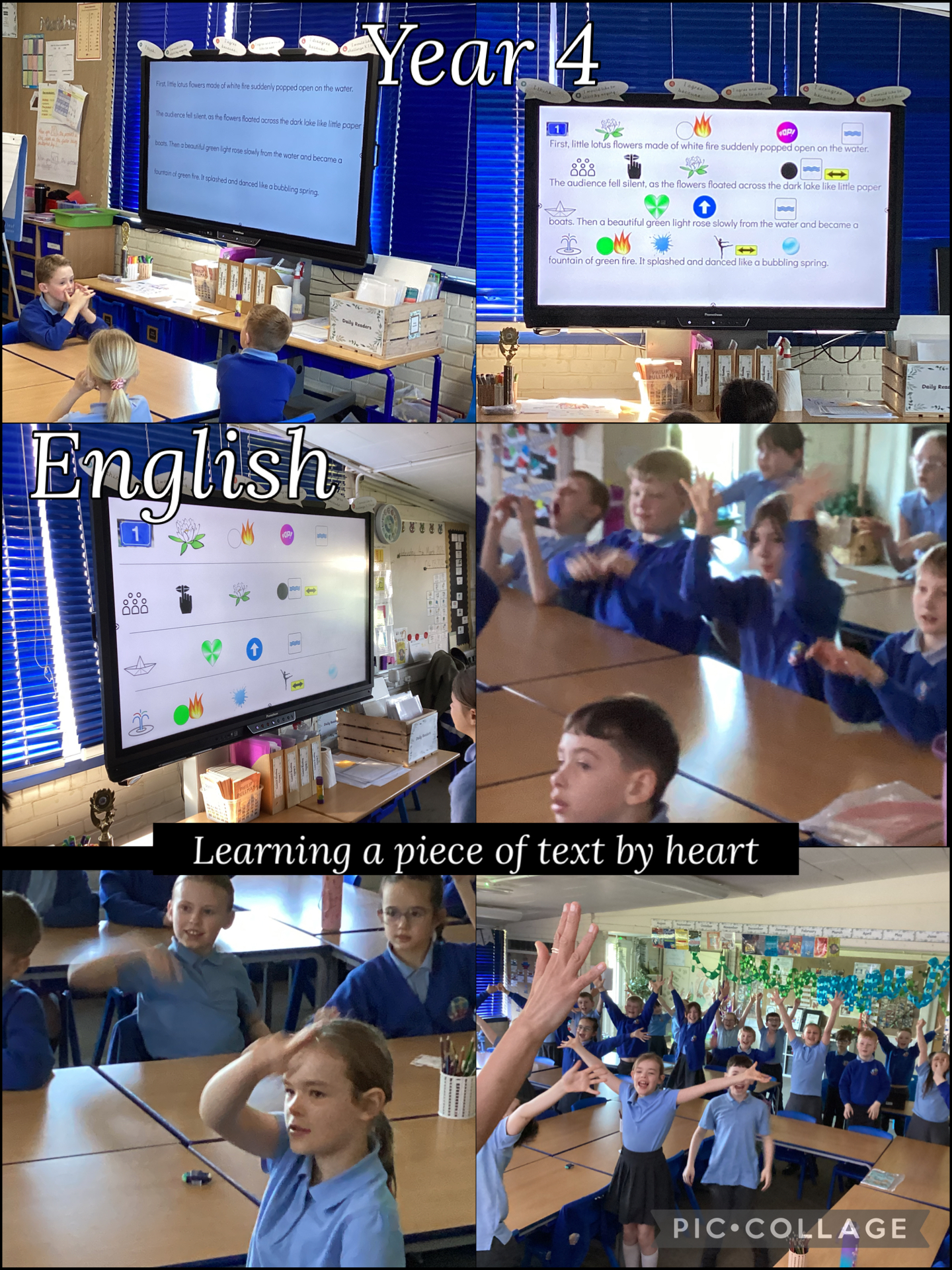 The children are definitely enjoying our current class novel, The Firework-Maker’s Daughter. In this lesson, the children had to practise reading and reciting a paragraph from the story. They used symbols and actions to help them remember the words in each sentence, and they rehearsed 4 or 5 times before the text was removed and only the symbols remained.