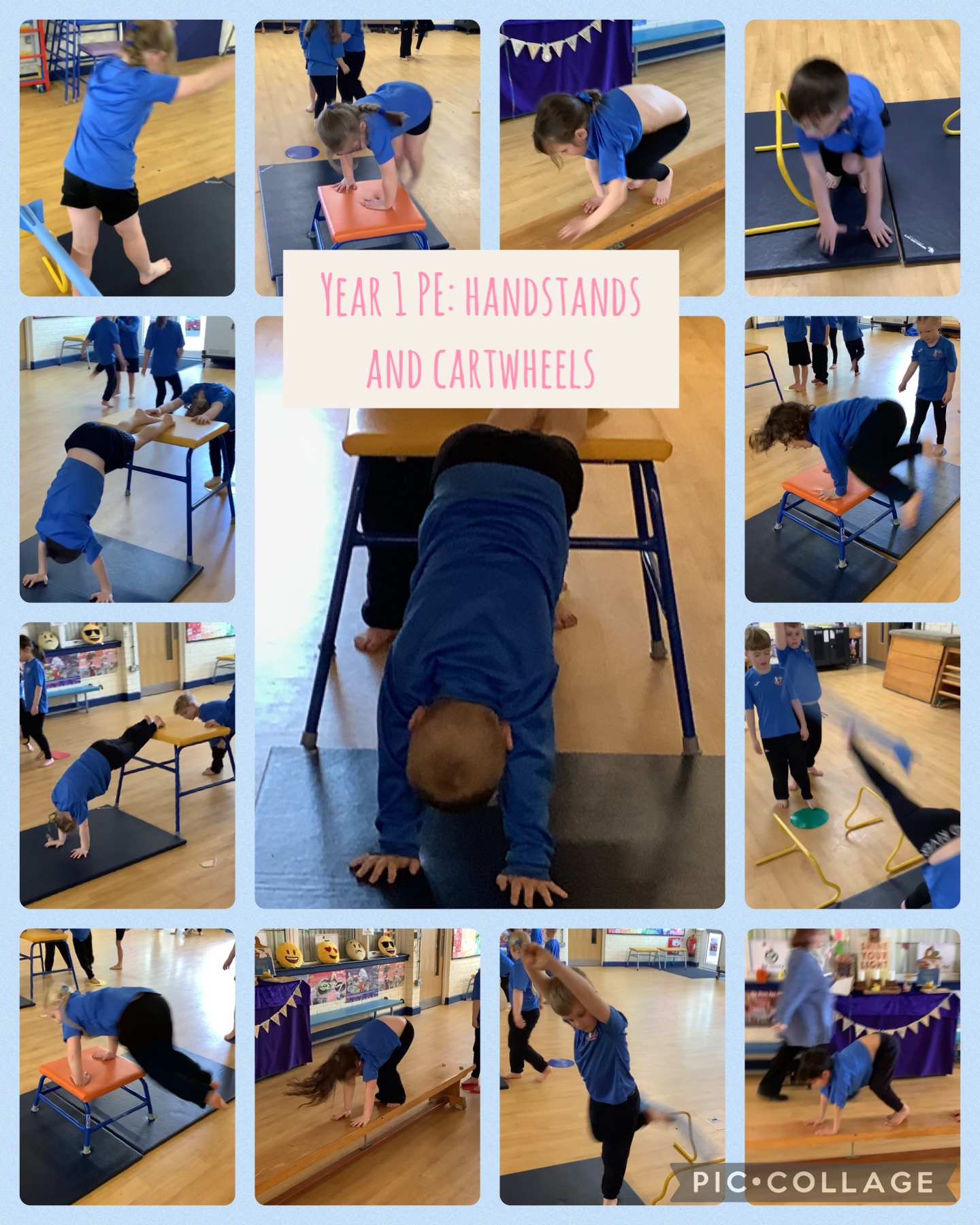In our PE session today, we learnt some safe techniques for handstands and cartwheels. These techniques will helping us develop our handstands and cartwheels later. We showed good balance skills and careful partner work.