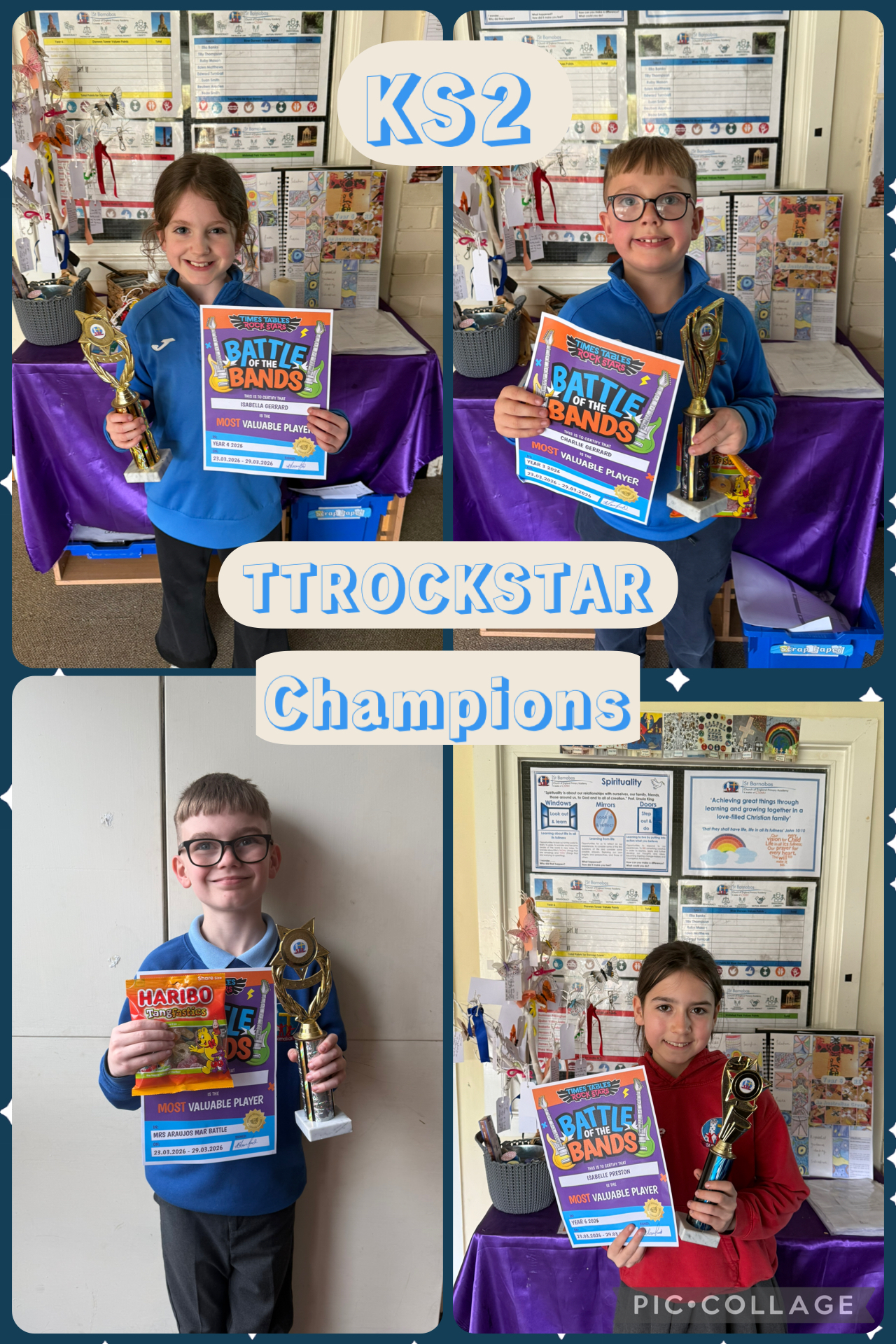 A huge well done to our KS2 Times Table Rockstars champions for this month!
