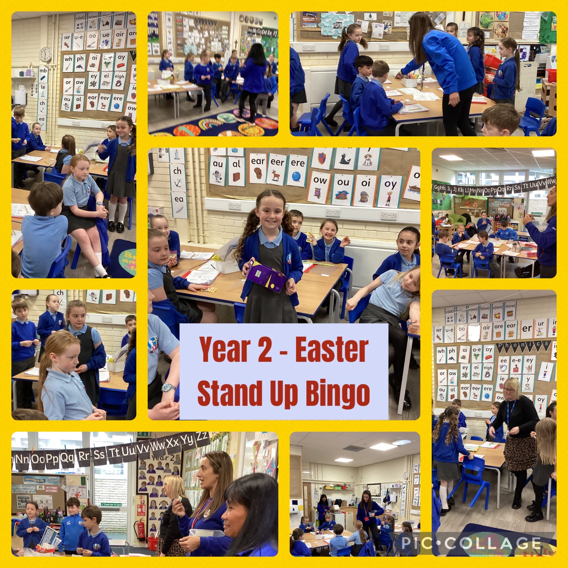 In Year 2, we were very lucky to be visited by Vienna's mum who played a game of Stand Up Bingo with the class with prizes donated from Tesco.