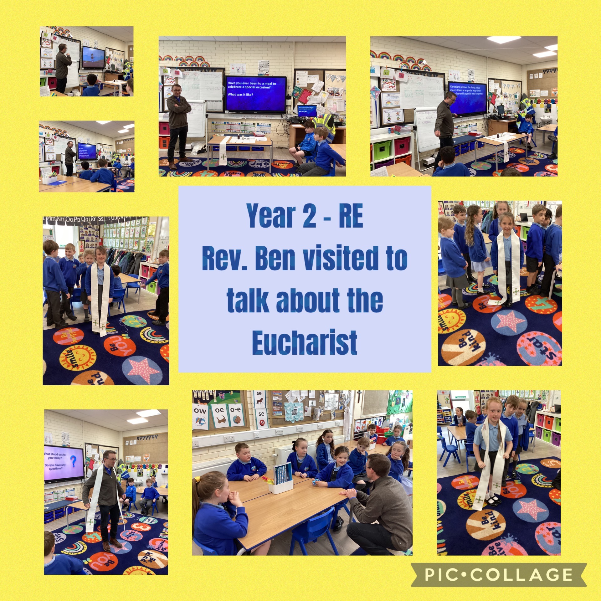 16 April 2026 Year 2 were visited by Rev. Ben this week. He explained about the Eucharist and why it is so important in Christianity. Year 2 Religious Education Visits and Visitors