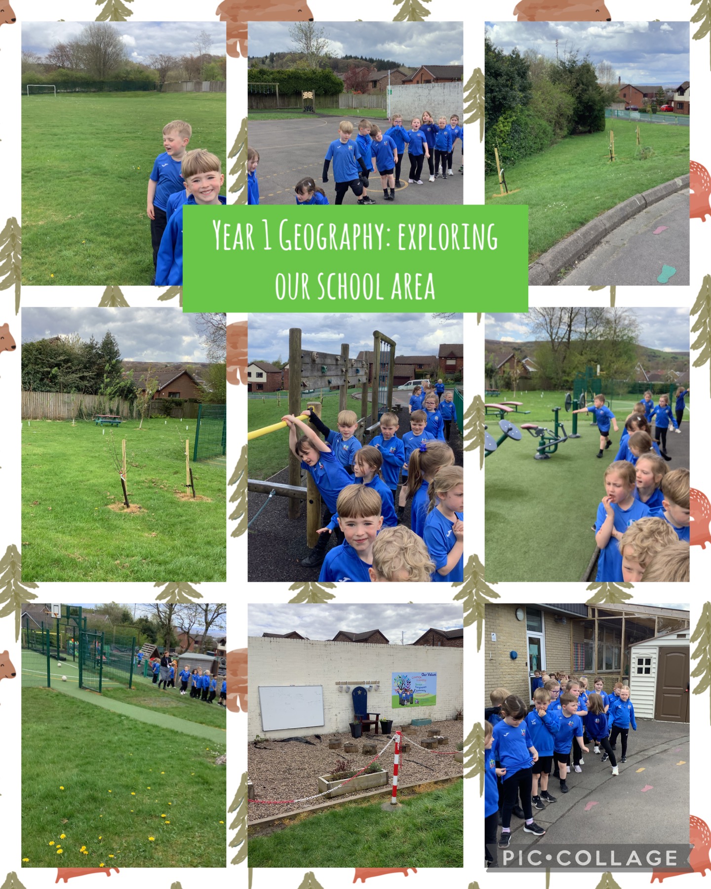In Geography, we recalled what human and physical features are. Human features are things made by humans such as playgrounds. Physical features are natural environments such as wooded areas. We walked around our school ground to find human and physical features. We had lots of human features such as the trim trail, playgrounds, the peace garden, the outdoor gym and the Muga. We had some physical features like the football fields and our growing school orchard.