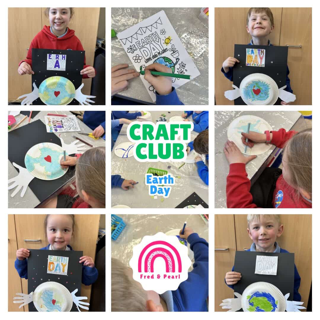 Today at Craft Club we made posters to show our love for our planet! With it being Earth Day week, we each made an “Earth” and made hands and a heart to signify the love that we should show our planet, finished off with a starry sky. Next weeks theme is In the Garden and there are still spaces available if you’d like to book on!
