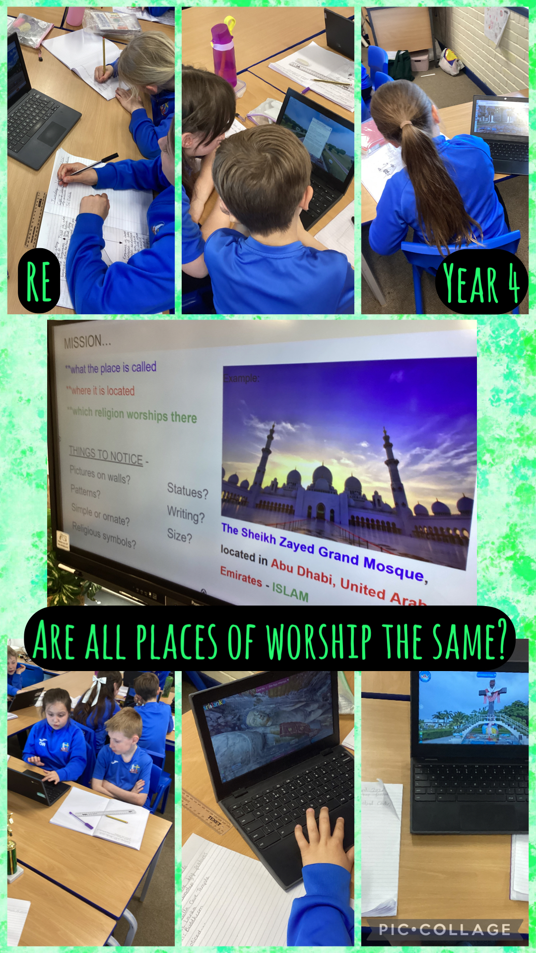 The first lesson of our new RE topic gave children the opportunity to explore a variety of places of worship from around the world. The children used Chromebooks to take virtual tours and make observations as they explored. Some of the children then gave the rest of the class a guided tour of their chosen place, sharing their observations as we took a look around.