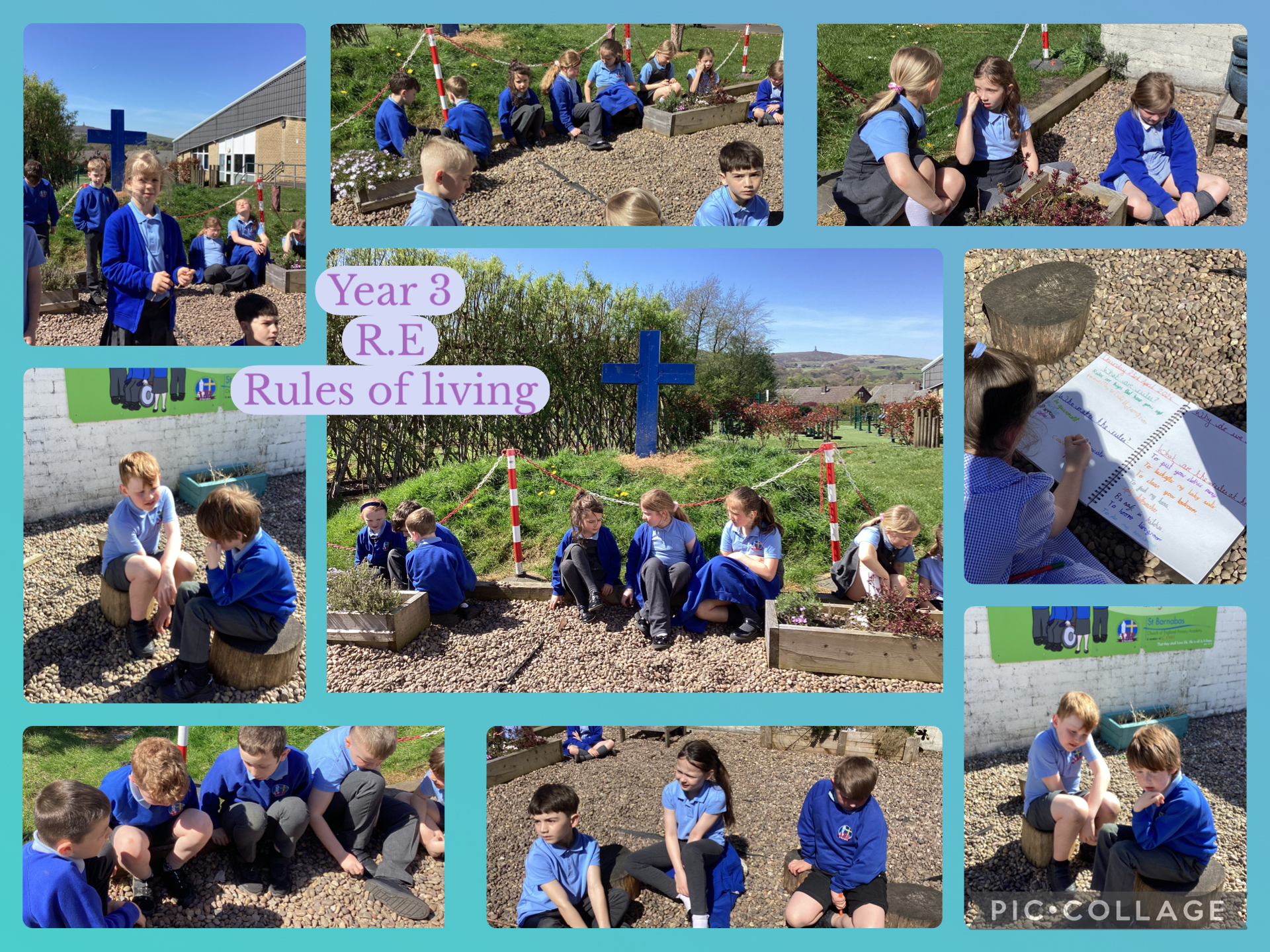 This afternoon, we continued to celebrate Earth Day by taking our "Rules for Living" lesson into the Peace Garden. Surrounded by God's nature, we took time to appreciate the world around us and think about how to live life in its fullness. We discussed how rules are not just about what we "can't" do, but are there to help us grow, much like Jesus taught us. We talked about how Jesus gave us the ultimate rules for living: to love God and to love one another. By following these guides, we learn how to look after our planet and each other with kindness and respect. It was a lovely, simple way to connect with the outdoors and reflect on the best way to live our lives.