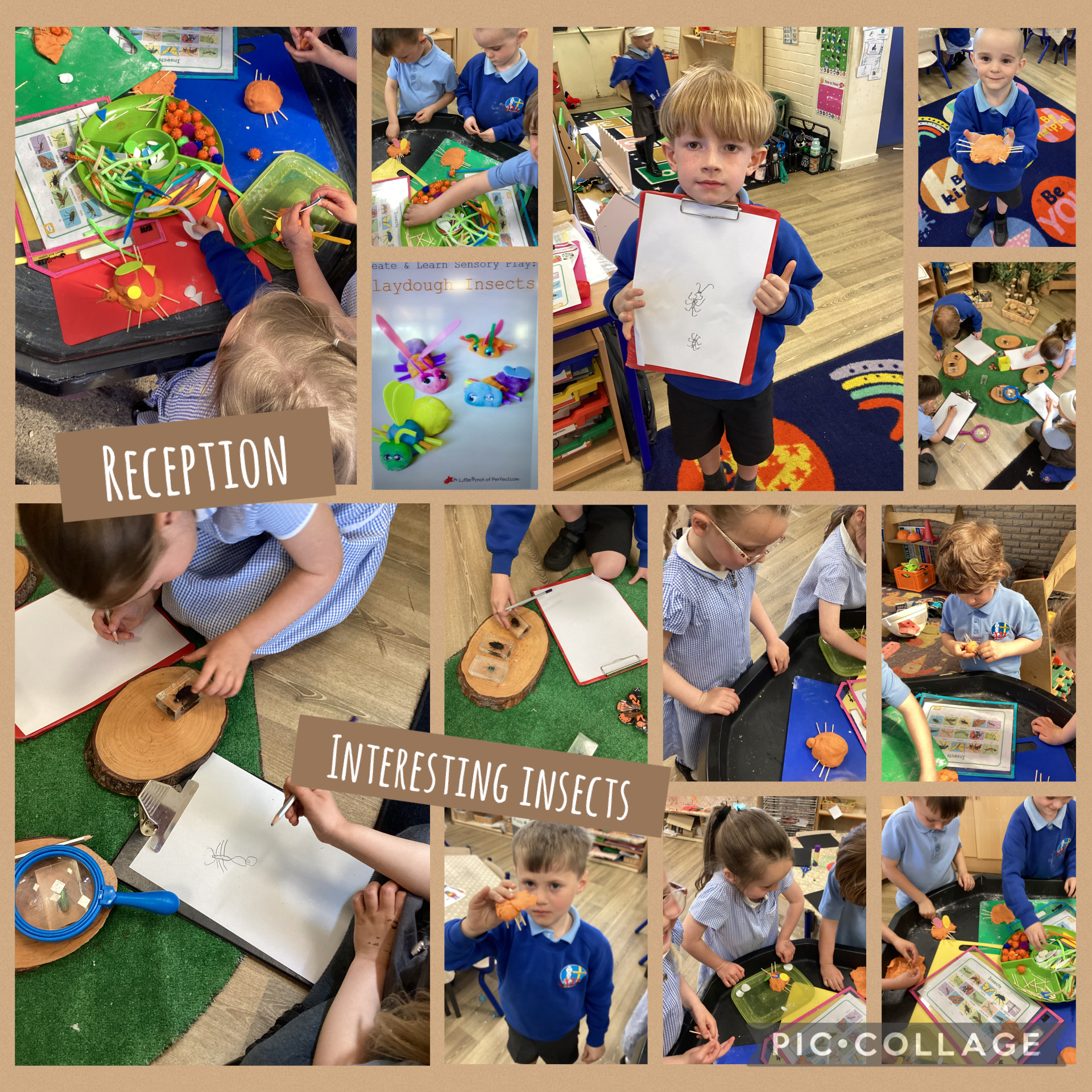 Our Reception scientists have had a "buzzing" time exploring the fascinating world of insects! To kick off our learning, the children investigated the essential characteristics that make an insect unique, discovering that they all share three body parts (a head, thorax, and abdomen) and exactly six legs. We put this knowledge into practise at our creation station, where the children used play dough and various craft accessories to build their own 3D models, carefully counting out pipe-cleaner legs and antennae. To finish our study, we practised our "scientific eye" by using magnifying glasses to create detailed observational sketches of real preserved specimens. It was wonderful to see the children transition from imaginative play to careful, accurate recording of the tiny details they discovered!