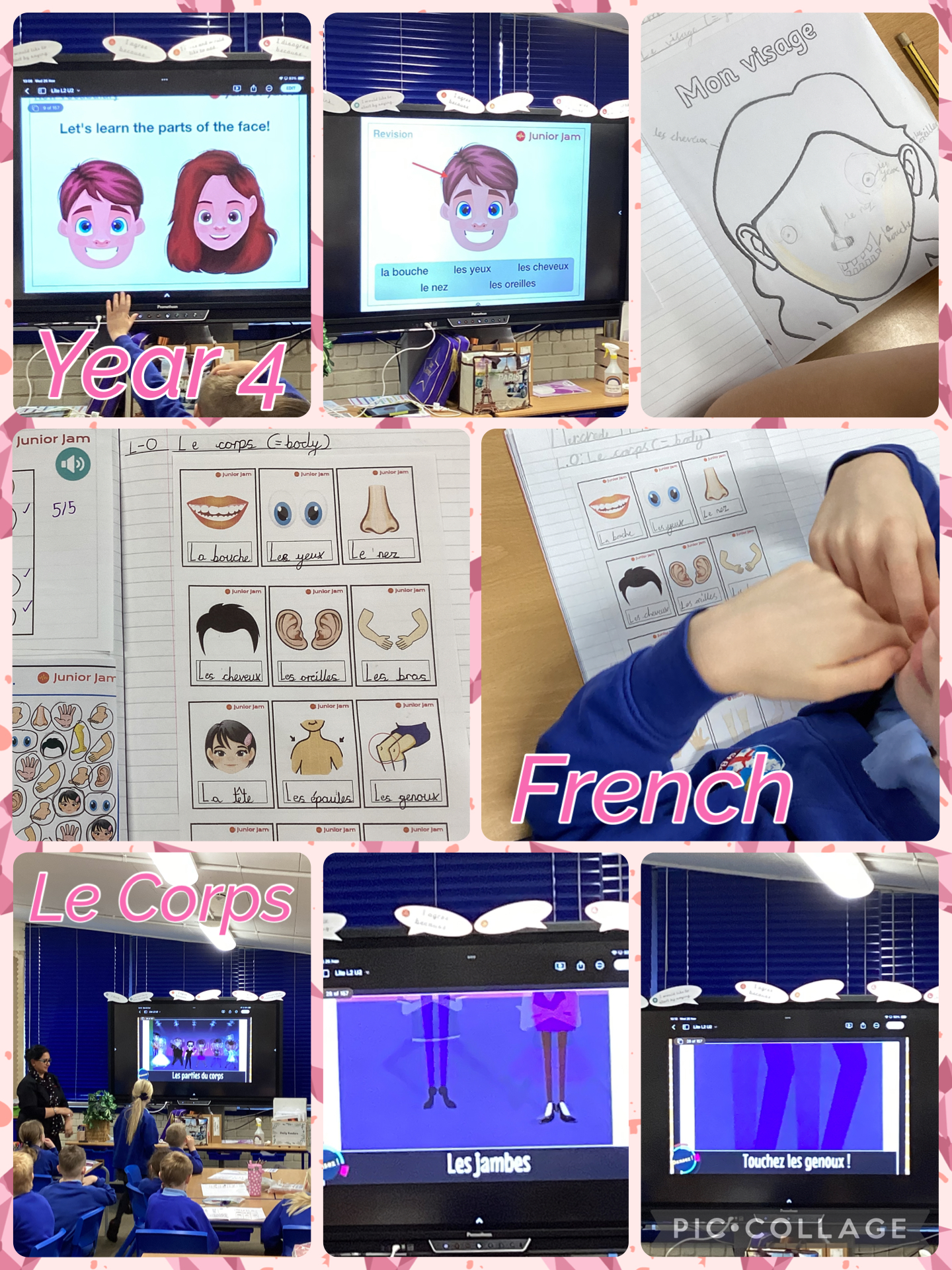 After recapping the French vocabulary for common facial features, the children sang songs and labelled pictures. They then began learning the French for other parts of the body in preparation for singing ‘La Tête, Les Épaules, Les Genoux, Les Pieds’ (Heads, Shoulders, Knees and Toes).