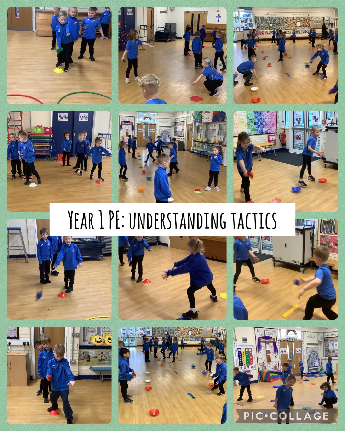 Year 1 built their understanding of tactics in PE. A tactic is tricking your opponent. We focused on underarm throwing and tricking our partner by pretending we are aiming one way, but throwing another. It was lovely to see them working together and being kind, even if they were tricked. Their aim has also improved.