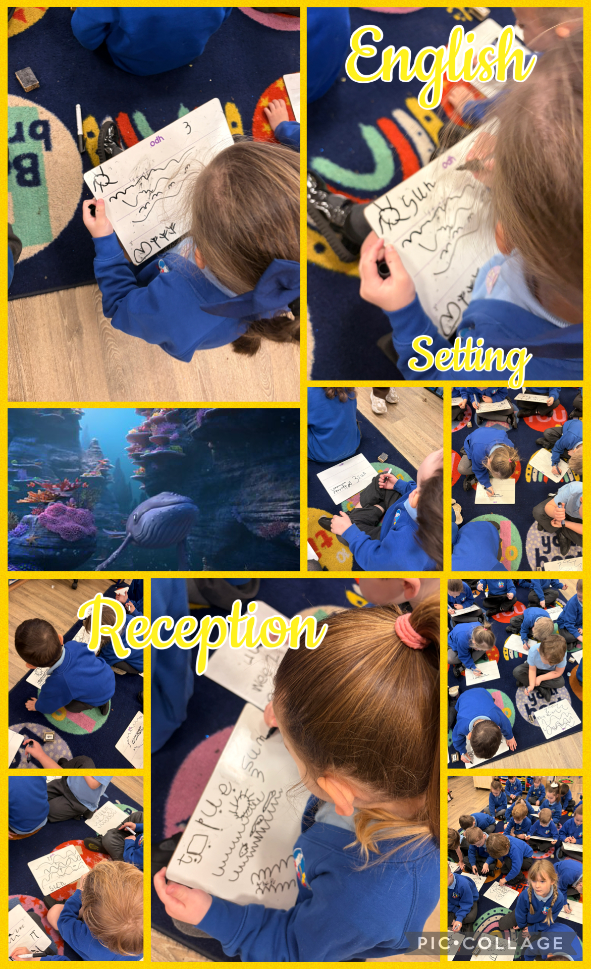 Reception class revisited the story of "The Snail and the Whale" today, with a particular focus on the setting. The children practiced describing the sea and learned a new vocabulary word: "shimmering." They also drew the setting, labelled their work, and explained how the sun makes the water shimmer.