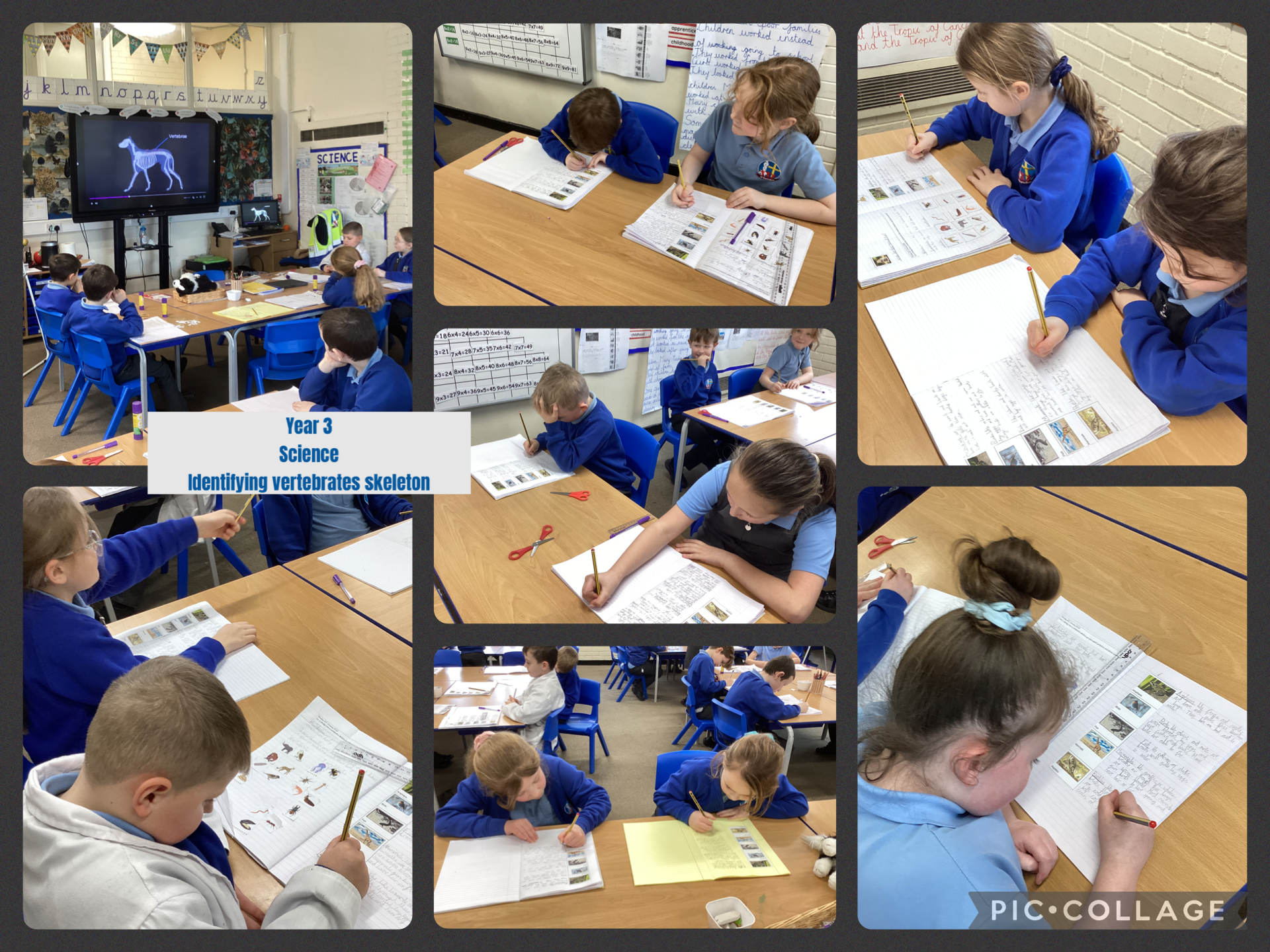 In Science today, the children explored how a vertebrate’s skeleton provides support and protection while allowing for movement. Building on their skills from previous years, they used online quizzes to test their knowledge and check their understanding. They were particularly fascinated to discover that even a snake has a spine, finding it very interesting to see how such a long, flexible animal is still classified as a vertebrate!