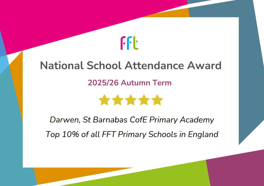 We are absolutely delighted to announce that St Barnabas CofE Primary Academy has been recognised with another National School Attendance Award for the Autumn 2025/26 term!