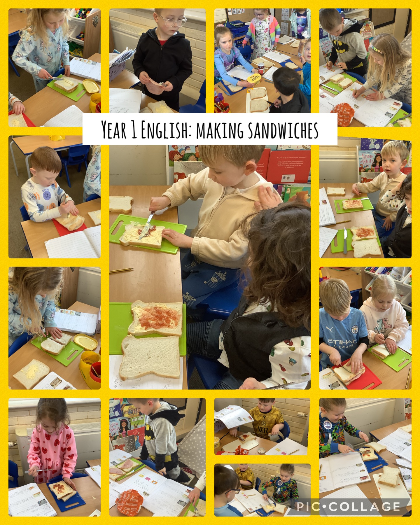 In English, we swapped our instructions with a partner and they had to follow the instructions to make the sandwich. Then, they had to rate their partners instructions and check that they had included time conjunctions, imperative verbs and adverbs. Finally, we got to eat them!